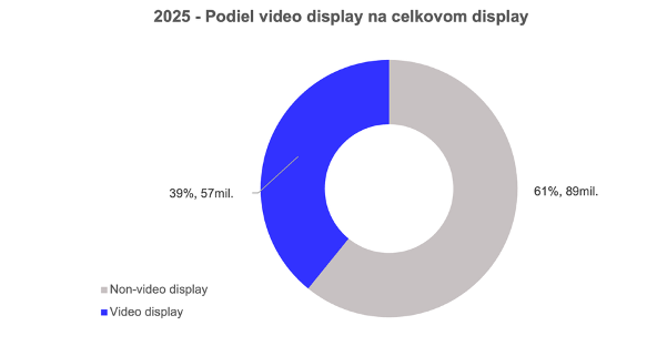 Podiel video display na celkovej display reklame sa medziročne zvyšuje. Kým v roku 2024 to bolo 37%, rok 2025 si pripísal +2% body rastu.