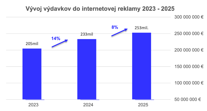 Investície do digitálnej reklamy na Slovensku dosiahli v roku 2025 hodnotu 253 miliónov eur, čo predstavuje medziročný rast o 8 %. Vyplýva to zo správy AdEx, ktorú na polročnej báze publikuje združenie IAB Slovakia.