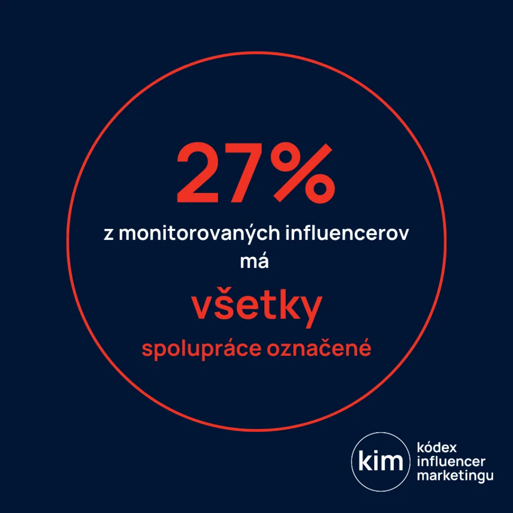 Zo 67 monitorovaných influencerov malo 18 (teda 27 %) všetky svoje príspevky správne označené. Rovnaký počet, 18 influencev, malo označenosť svojich príspevkov menej než 50 %.