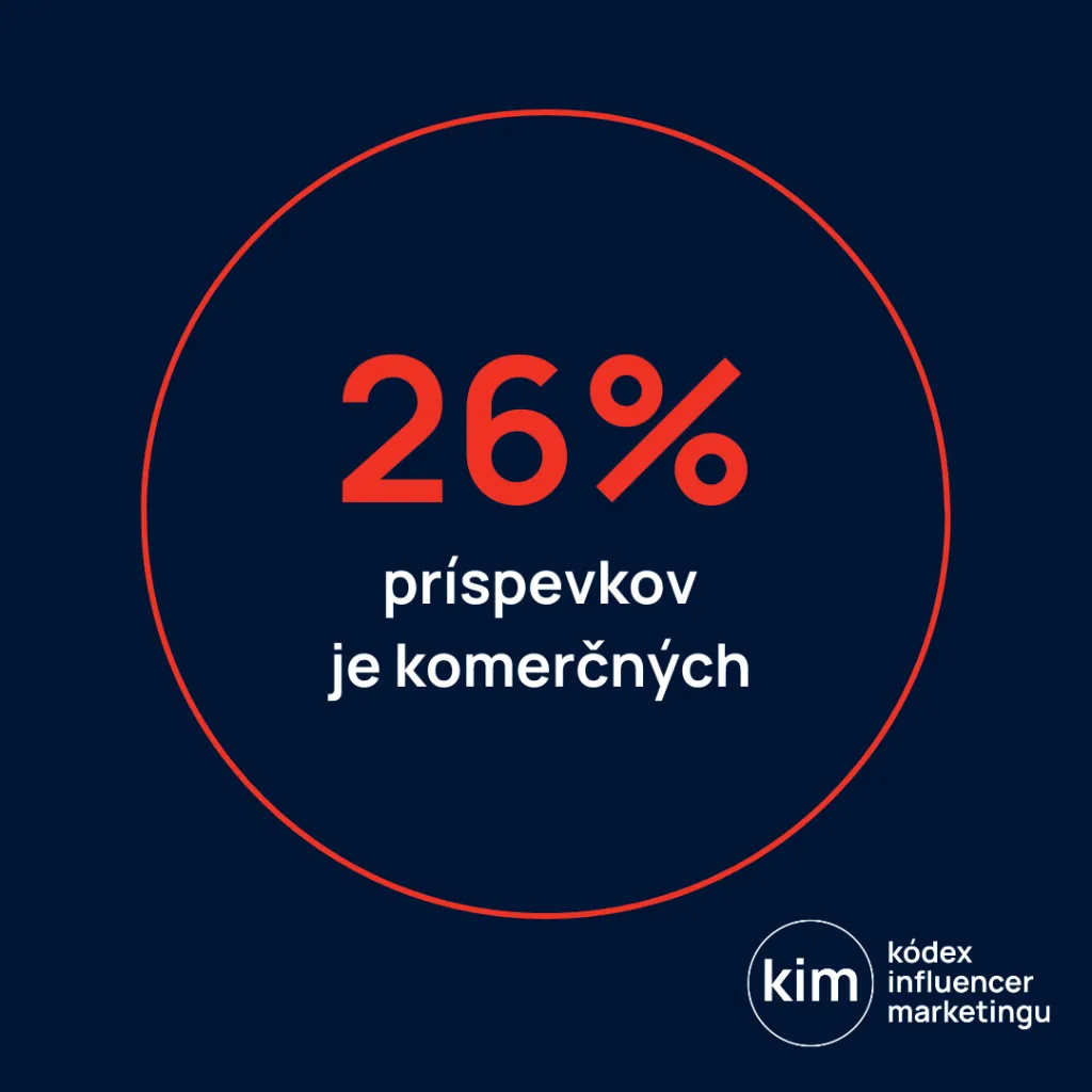 Z celkového počtu sledovaných príspevkov bolo 26 % identifikovaných ako komerčné. Komerčný príspevok zahŕňa aktívny a/alebo pasívny product placement, prezentáciu konkrétnej značky a/alebo súťaž. Príspevky týkajúce sa vlastných produktov alebo projektov influencera neboli započítané ako komerčné príspevky.